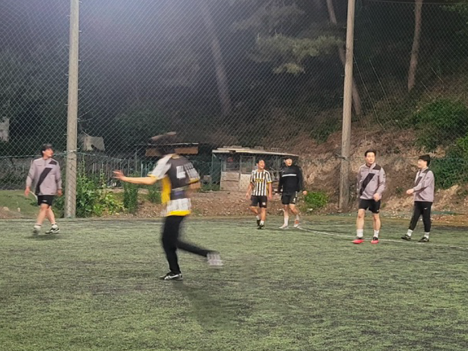 저희는 매주 수요일 회사 옥상 풋살장에서 소소하게 임직원들끼리 자체전을 진행하고 있습니다.