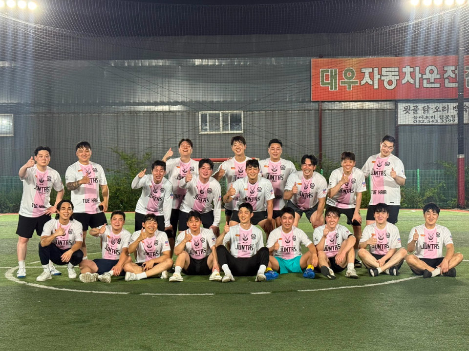 유니폼 하나 멋지게 만들고자 준타스에서 맞춤제작 했습니다. 디자인이 너무 맘에 들어 팀원들 다 좋아하구요 저희는 열정 가득히 운동하고 있습니다